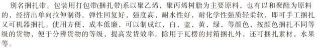 打包带可塑性好,断裂拉力强,耐弯曲疲劳,密度小,拉伸冲击性能佳,使用方便。